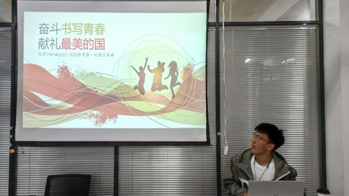 化学1902班于2021年10月14日晚七点图书馆研讨空间举行了题为“奋斗书写青春,献礼最美的国”的团日活动。活动由团支书王鹏棋主持,按照时间顺序梳理了2021年的重大事件。