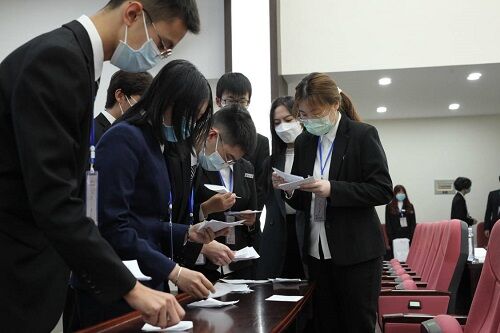 本次大会共有四位第三十九届学生会主席团候选人,在经过了精彩的竞选演说后,大会正式代表根据主席团候选人的简介、竞选演说及日常表现等填写选票并在会场工作人员指引下有序投票。在总监票人、监票人的监督下,总计票人、计票人当场清点票数,现场唱票并统计结果。本次大会共差额选举出三名主席团成员,分别为马路遥、杨婷、卢卓然,并召开全彩H漫