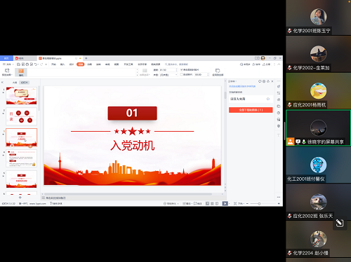 通过腾讯会议举行化工院学生助理党学线上培训。本次培训由化工院徐晓宇老师进行讲解说明。