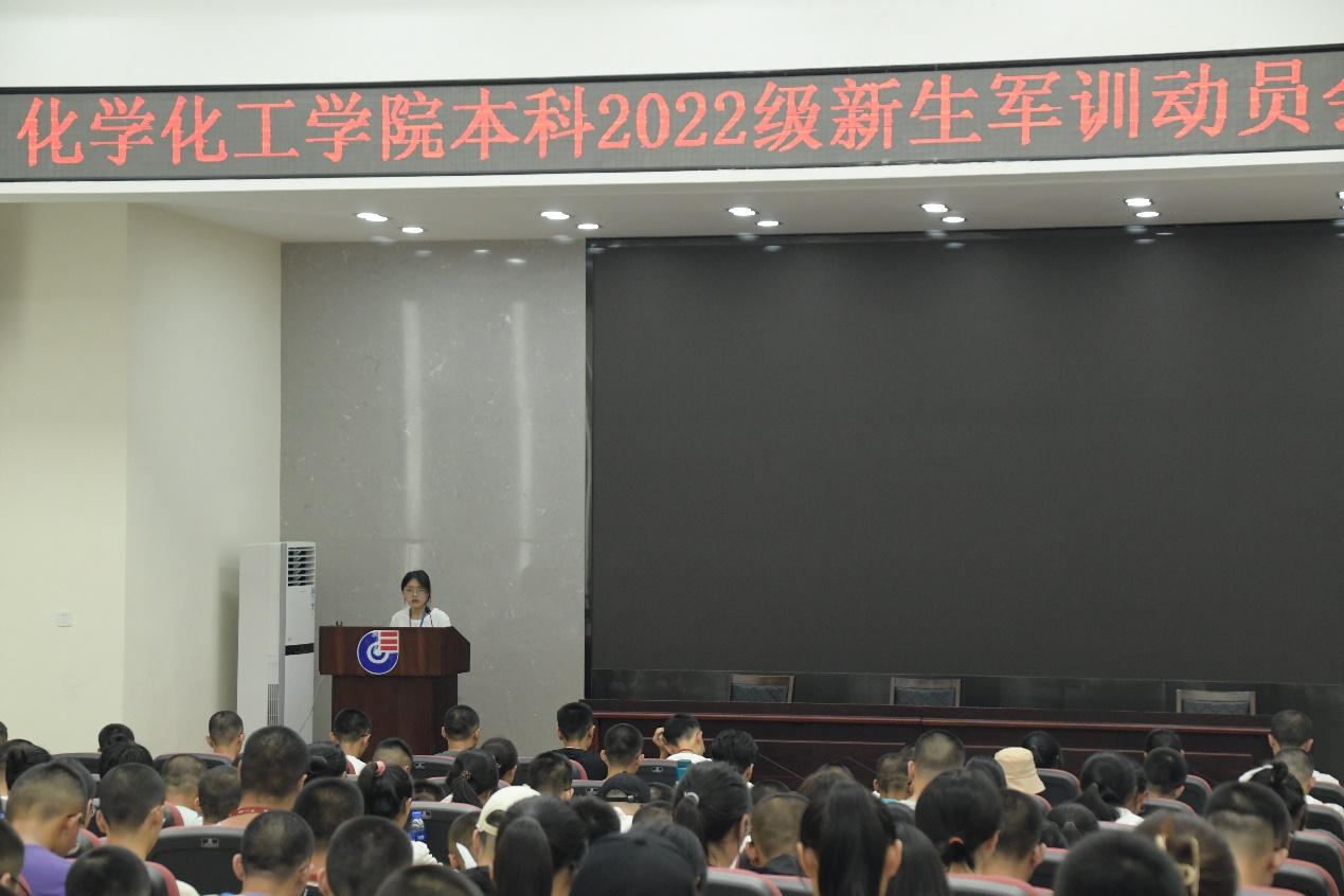 会议进行第一项,2022级辅导员何妮翰老师讲话。何老师在短暂的自我介绍后向同学们传递了大学生军训的重要意义,即磨炼新生的意志,增强新生的体质,让同学们血液中流淌着对中华民族的热爱和对民族振兴的希望。