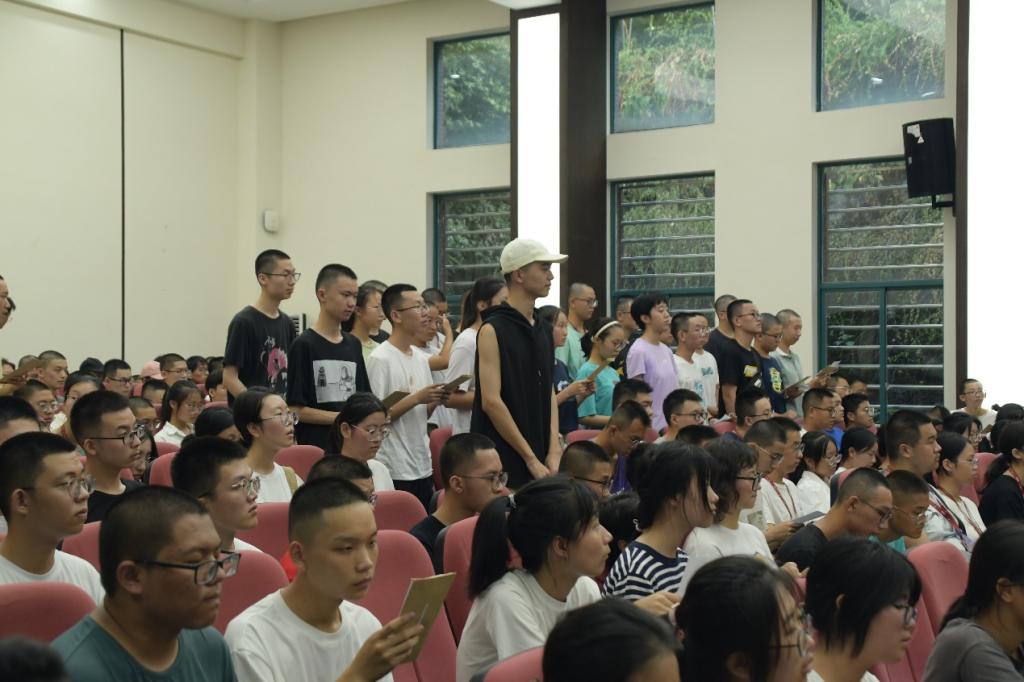 2022级全体新生同学在班级助理的带领下于化工院D区报告厅按时且高效地完成了第一次全体集合,并召开新生军训大会。22级全体新生、新生班助以及方阵训练教官们参与此次动员大会。