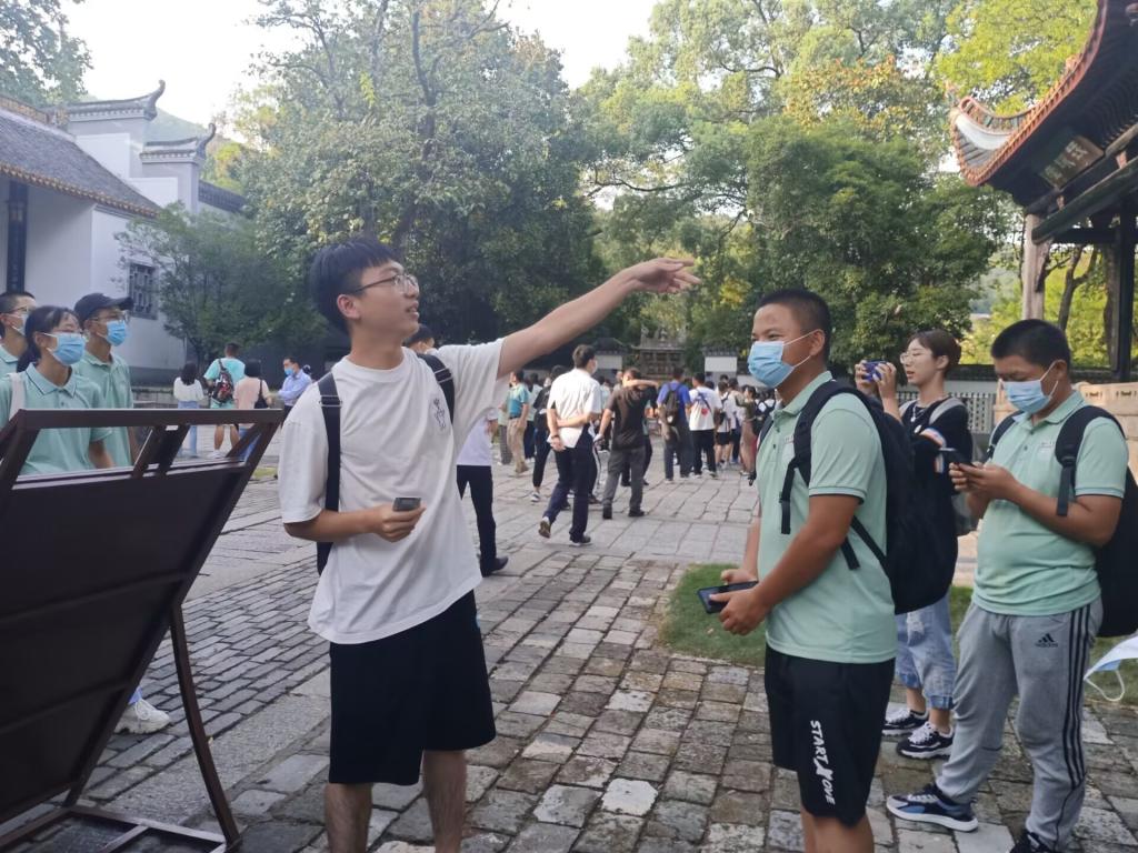 同学们在林初楷学长的讲解下重温朱张会讲的庄重,感悟书院文化底蕴的深厚,感受千年学府的悠久历史以及百年以来的发展。在岳麓书院大门前的对联“惟楚有才,于斯为盛”下同学们体悟到历史的厚重以及穿越百年的殷切希望;于乾隆提写的“道南正脉”下感悟岳麓书院学规的教诲,学规先交做人再言治学可见湖大的为学精神;于“实事求是”的牌匾下感受到了对青年学子从事实出发、追求真理、脚踏实地、不断前行的勉励。通过此次参观,同学们在大学伊始感受到了全彩H漫