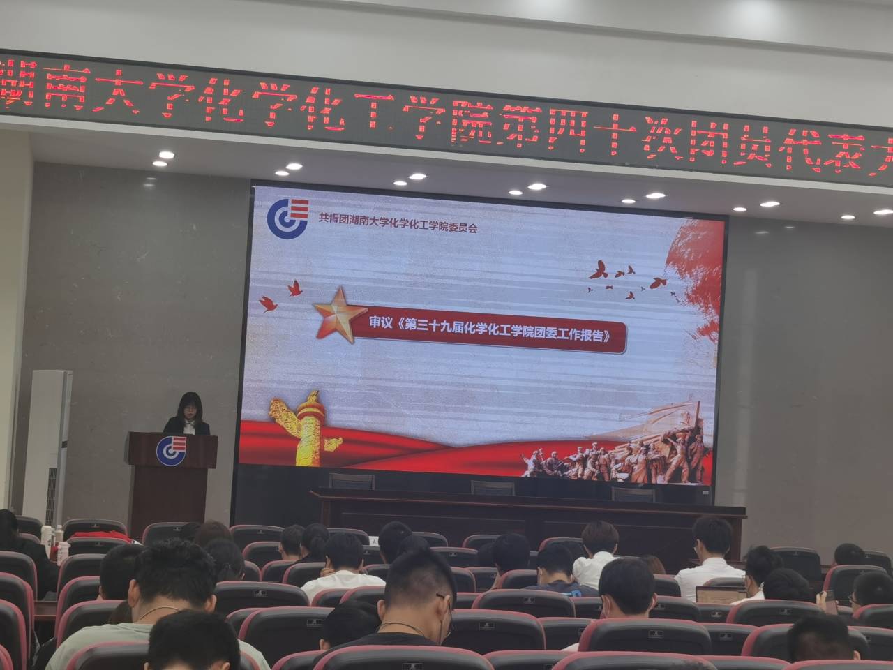 团委工作报告》,其次由第四十届团委副书记吴佩兄同学宣读倡议书。最后,在全体同学齐唱的校歌声中此次会议圆满结束。