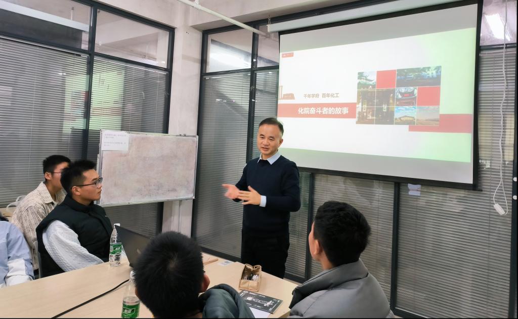 长院张晓兵,化工2202班导师金波、王少飞,本科2022级辅导员何妮翰出席本次班会。