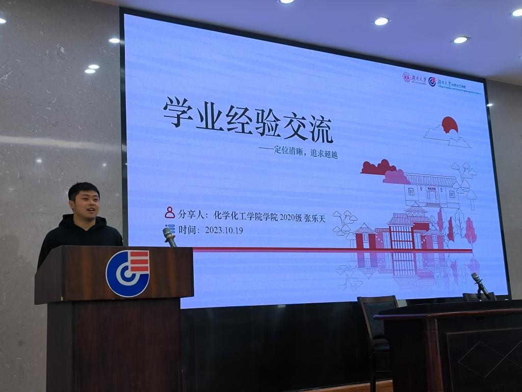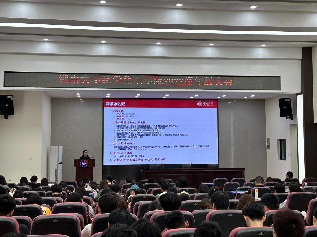 本次年级大会还邀请了2022级新生班助理团队总负责张乐天学长进行自己的大学生活经验总结和分享。张乐天学长首先分析了大二与大一的不同之处,让仍处于迷茫中的同学们看清现实找准方向。接着指出大二学生现阶段应该要做的事,帮助同学们认准目标为之奋斗。最后学长还分享了他推免到清华大学的心路历程和宝贵经验,向同学们提供了许多珍贵信息,也为大家树立了优秀的榜样,激励同学们为了目标而奋斗。