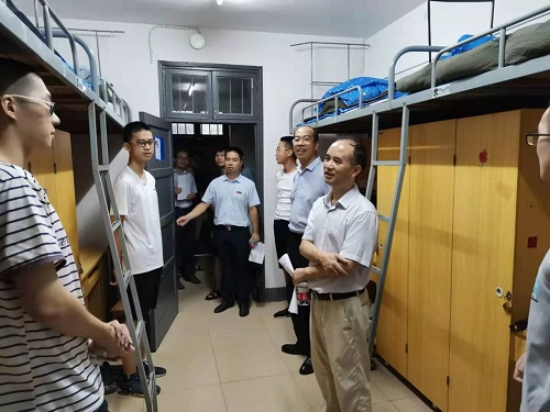 随后张院长、王书记、范书记与各班班导师分别前往男女生宿舍进行慰问,了解新生的家庭和入学情况。在交谈中,院领导了解到新生大多来自全国不同的省市。在询问了新生对学校的印象后,老师希望同学们能够尽快融入新的学习环境,学会有方法地去学习,做好大学四年的学习规划,树立长远目标;生活在同一个宿舍的同学要互相学习、互相帮助;有问题及时反映,注意人身安全。王书记强调,学校相关部门要密切关注并排查寝室中的安全隐患,对新同学提出的意见与建议及时回应、高效处理。