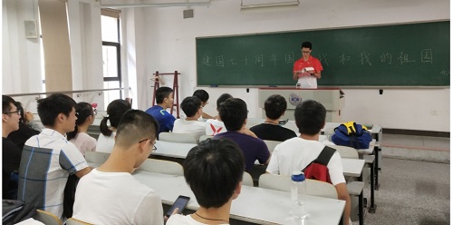 化学1803班在综合楼115教室举行了以“祖国七十华诞,我和我的祖国”为主题的团日活动。