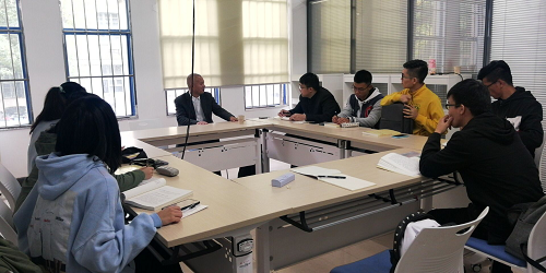 在交流会后,龙兵教授与党支部各位同学合影留念。党支部进行了关于习近平新时代中国特色社会主义思想的政治学习,在学习中指导实践,真正做到融会贯通、知行合一。