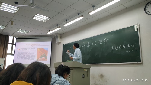 为深入学习贯彻习近平新时代中国特色社会主义思想,推动全党更加自觉地为实现新时代党的历史使命不懈奋斗。2019年12月23日下午,化工1702班全体同学在班长和团支书的带领下在复临舍504开展了以"不忘初心,牢记使命"为主题的团日活动。 本次团日活动邀请到了化工1701班和化工1703班的几名党支部的主要成员,为同学们开展此次主题教育活动。支部代表们结合刚召开不久的十九届四中全会,以及当前国际国内形势,个人对党建和国家制度的理解与看法,深刻阐释了中国特色社会主义制度和国家治理体系的显著优势,从理论与实践、历史与现实,多角度、多方面对党的十九届四中全会精神作了全面准确、深入系统的宣讲和阐释。