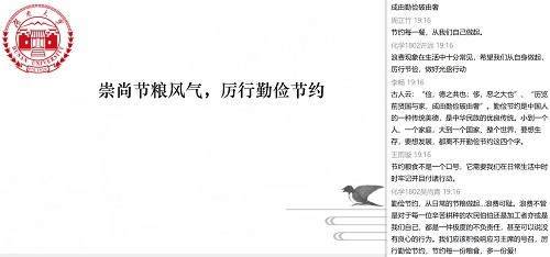 此次主题班会为同学们树立了厉行节约、文明用餐的观念。化学1802班还将通过“21天光盘行动”打卡等形式,引导班级成员切实增强节约意识,将勤俭节约的优良传统落实到生活中,为杜绝餐桌浪费的现象贡献自己的力量。