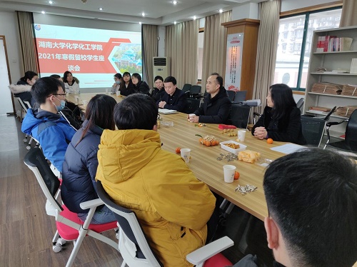 在新化工楼D区党员活动室召开2021年寒假留校学生座谈会,看望慰问留校学生。