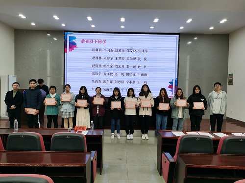 会议的第二项,由同学们提出自己的疑惑,潘老师进行现场答疑,同学们踊跃的举手参与,询问了简历制作中的重中之重部分以及选调生相关问题。会议的最后,公布简历设计大赛获奖名单并由潘老师给获奖同学颁奖。