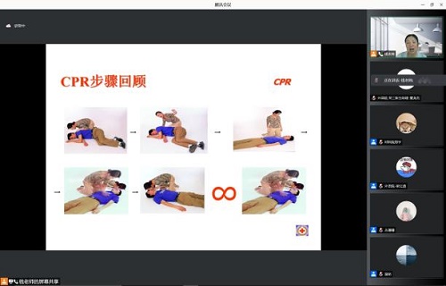 化学化工全彩H漫2021级学生助理应急救护培训通过腾讯会议举行。本次培训由应急救护师钱桂银老师主讲,钱老师从新冠病毒预防、救护新概念等方面为大家展开培训。
