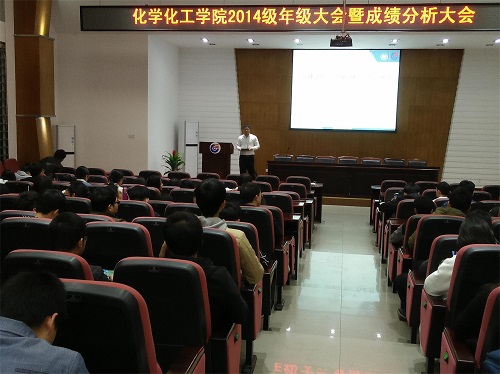 2014级成绩分析大会在化工院报告厅圆满召开,本次大会由年级长南彬同学主持,由14级辅导员刘世明老师主讲,2014级全体同学参加了此次会议。此次会议旨在通过成绩分析和对近几年考研、保研和就业形势的分析交流,指引同学们在大三下学期这个关键时刻认清自己的方向,找到自己的兴趣所在,逐步将想法付诸于行动之中,给自己的大学生活划上完美的句号,为以后的人生谋划更好的前途。