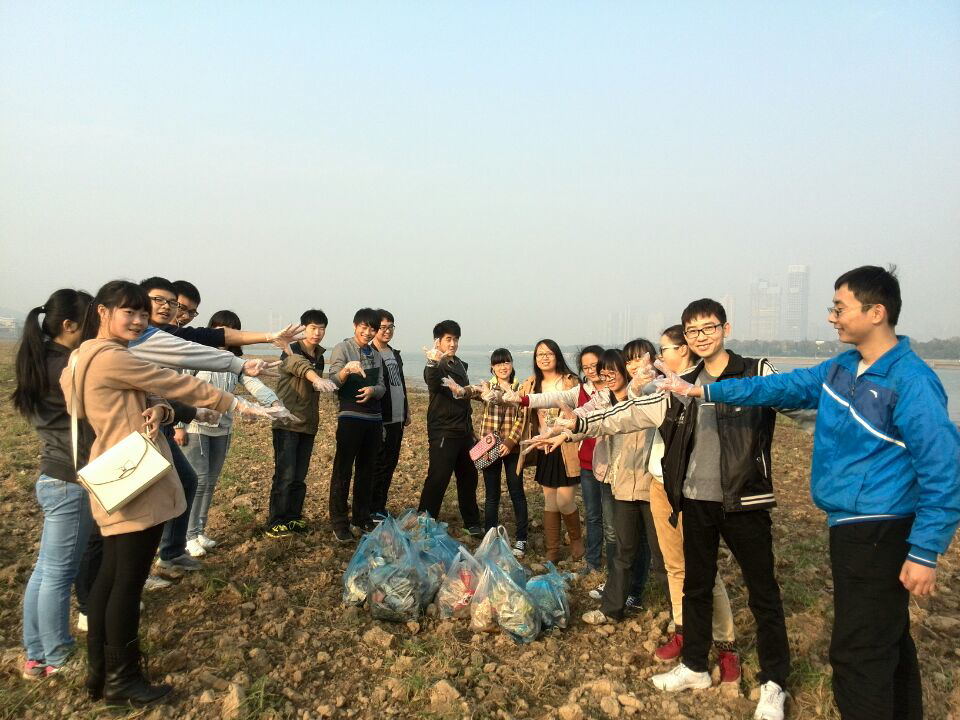 光说不做是没有用的,所以,22号下午,应化1302的环保卫士践行环保理念,来到湘江边上捡垃圾,还湘江美丽面貌。阳光明媚,天空湛蓝,白云朵朵,可是江边红红绿绿的垃圾却大煞风景,生生地破坏了这一份恬淡的美。看到此景,应二的同学立马开始行动了。路有点崎岖,有些垃圾埋在土里,很脏,但是大家都没有抱怨,只是默默地搜索垃圾,弯腰拾起,装入垃圾袋,一遍一遍地重复这些动作。有些来此游玩的人看到这群小卫士,对同学们的环保活动赞不绝口,有的甚至拍下照片传至微博。一个小时后,大家累出了一身汗,垃圾袋都几乎装满了。但是,因为人数有限而地方太大,其它地方肯定还有很多垃圾,而这就需要身在长沙的每个人努力了。
