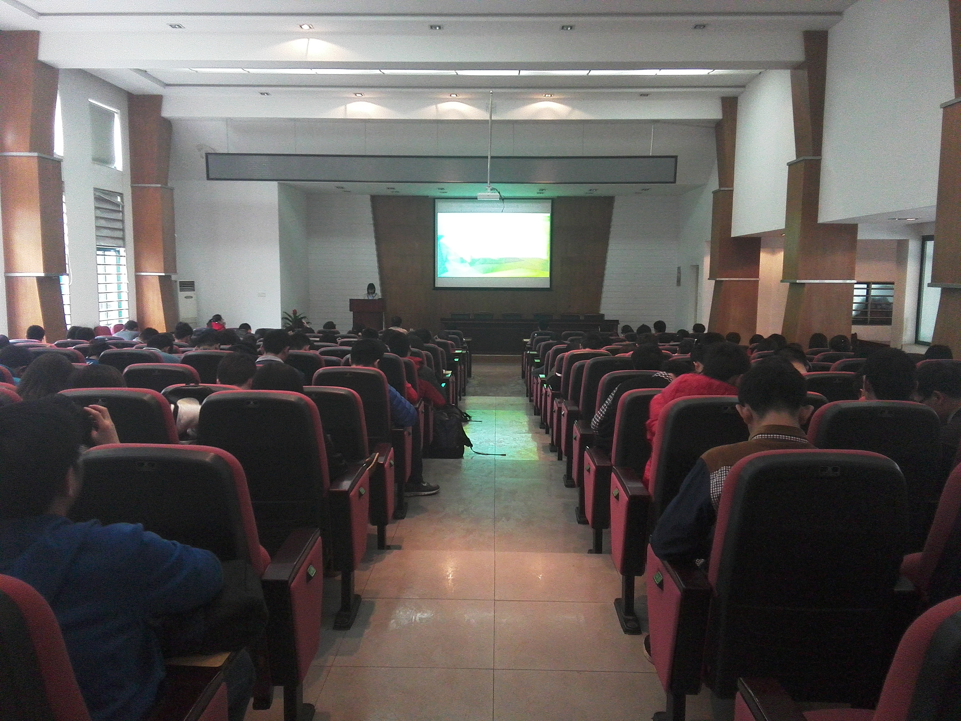 时间还早,大家就早早来到报告厅。会议由王楚晴同学主持,在介绍了各位到场嘉宾后会议正式开始。首先是年级长肖可敬对上一学年年级的活动做了总结,提出了值得改进的地方以及对这一学年的设想与期望。内容丰富的PPT,条理清晰的叙述让大家都对年级活动有了深刻的了解。到了班级风采展示环节,化工一班在上学期三次月评优都荣获第一成了当之无愧的优秀班级,班长金楠向大家展示了工一的学风建设,寝室文化,课外活动等方面,激励大家向优秀班级看齐。而化学基地班在期末考试时以极低的挂科率成为学风最优班级,化基班长孙震向大家介绍了班里同学学习的经验,带给大家不少启发。