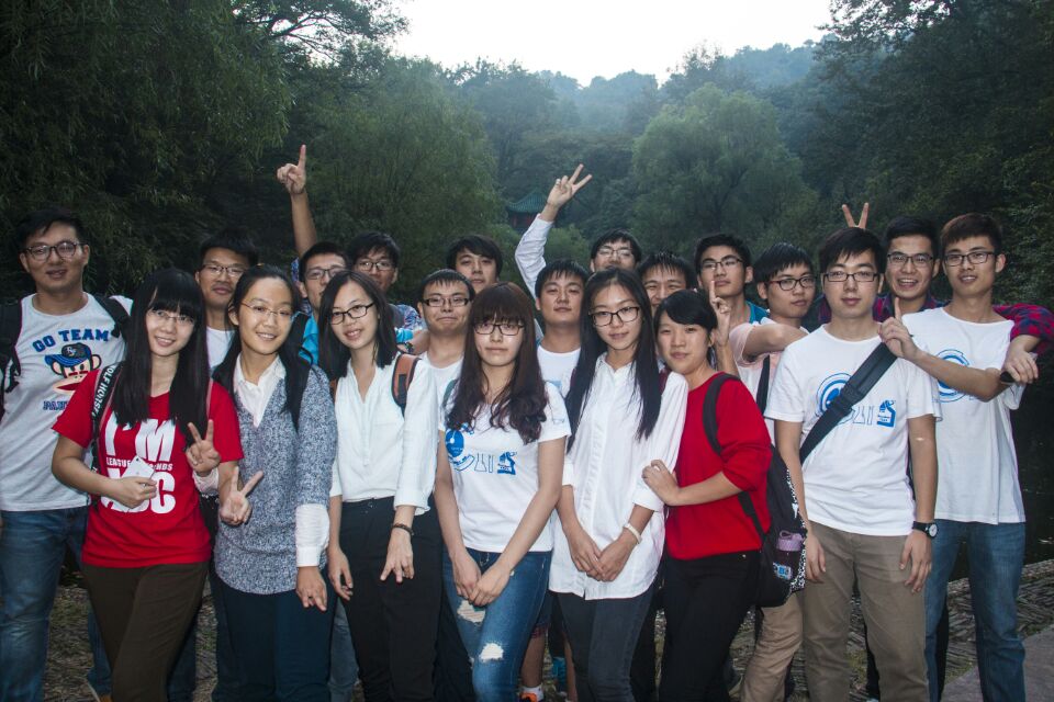 这是化学1303班的新学期的第一次团日活动,班长呼唤着所有的同学拍照。大家欢笑着排成几排,以爱晚亭为背景,欢号着,我们新学期的梦想。