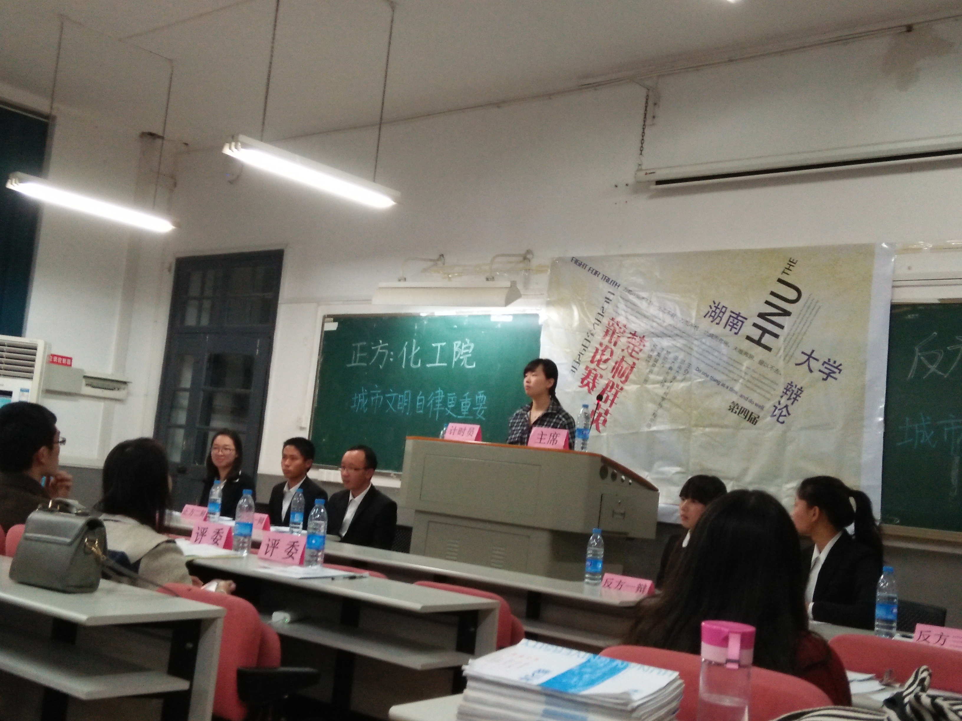 2016年4月1日晚八点十分,第四届麓山会讲·楚材群英辩论赛小组赛于东楼211举行。本时段比赛的辩题为“城市文明,自律更重要/他律更重要”,正方全彩H漫