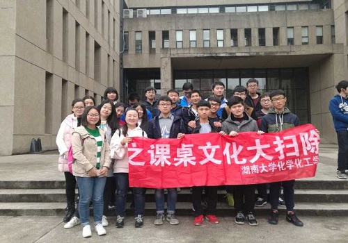 中午12点,化学1603班班长和几个班委抵达综合楼,帮助青志协的同学们做准备工作,即进行药水与抹布的分类。随着时间的推移,同学们陆陆续续地来到综合楼,情绪高涨。青志协的干事们首先向大家介绍了课桌文化大扫除活动作为化工院品牌活动之一的起源发展和特殊意义,并简单地说明了活动的一些注意事项,希望同学们保持安静,不要打扰到上自习的同学。
