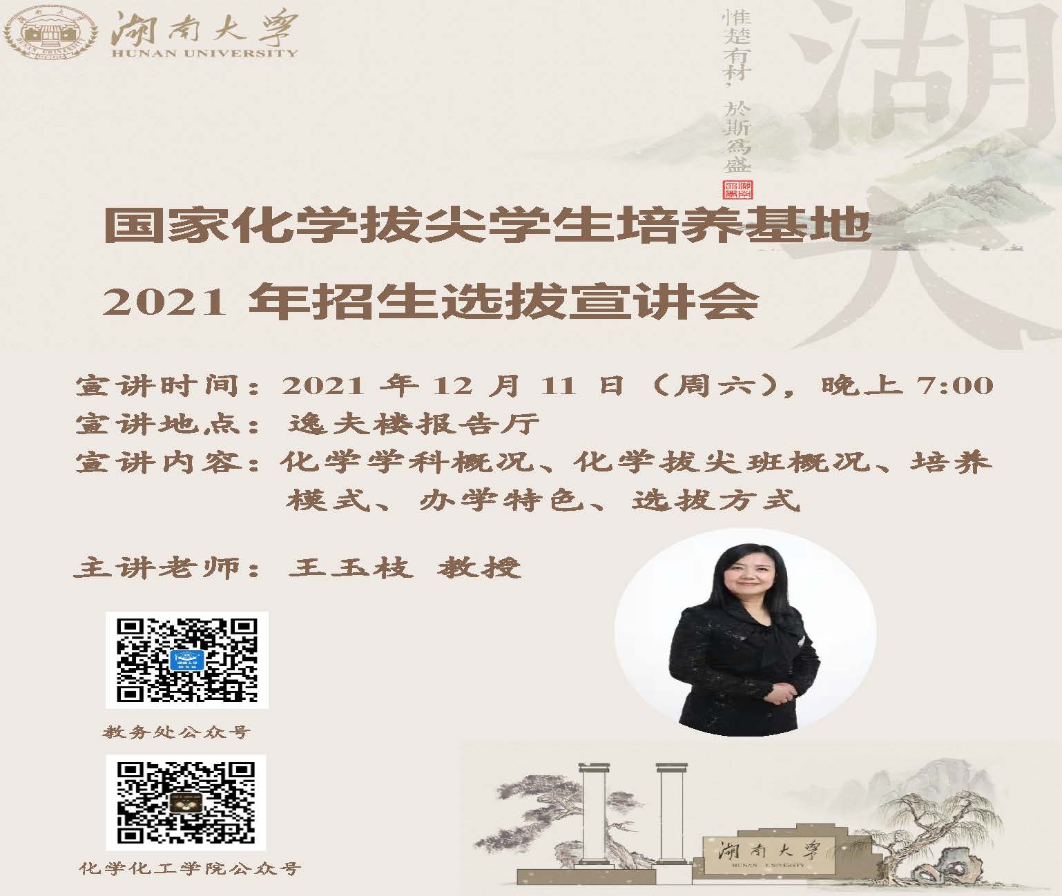 国家化学拔尖学生培养基地2021年招生选拔宣讲会