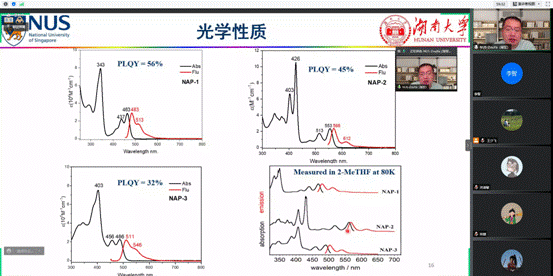新加坡国立大学邹亚博士作了题为《基于苝的新型有机共轭分子的合成、性质及应用》的学术报告,目前主要从事新型多环芳烃功能材料的研究。