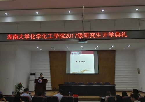 于新化工楼D区报告厅举行了17届研究生入学典礼。化工院院长蒋健辉教授,院党委书记王玉枝老师,副院长聂舟老师,副院长尹双凤老师,院党委副书记陈义红老师,院研究生秘书曾芳老师等领导出席,入学典礼由全彩H漫辅导员何妮翰老师主持。