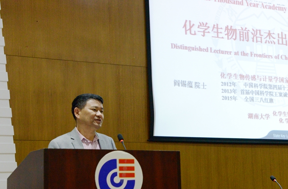 2017年10月17日,应化学生物传感与计量学国家重点实验室谭蔚泓主任邀请,中国科全彩H漫生物物理所研究员、博士生导师阎锡蕴做客“千年学府论坛--化学生物前沿杰出学者讲座”,作题为“发现纳米酶背后的故事”的学术讲座。副校长谭蔚泓主持讲座,全校200余名师生参加。