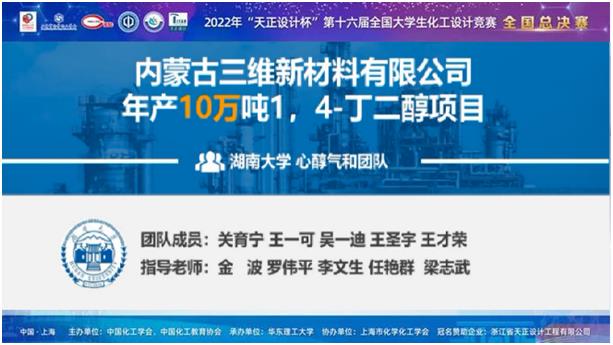 心醇气和团队作品“内蒙古三维新材料有限公司年产10万吨1,4-丁二醇项目”具有绿色低碳、安全节能等特色,此前在华南赛区比赛中获得特等奖,并进入全国总决赛。