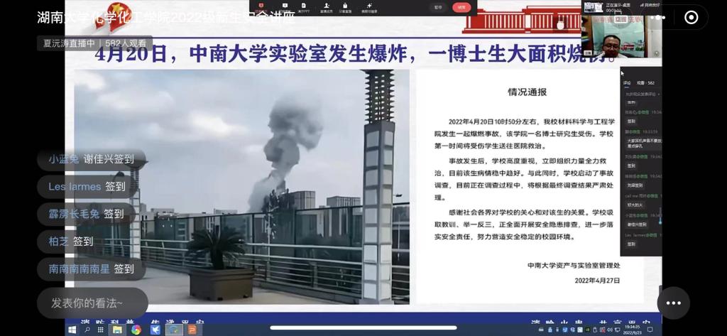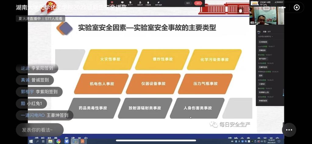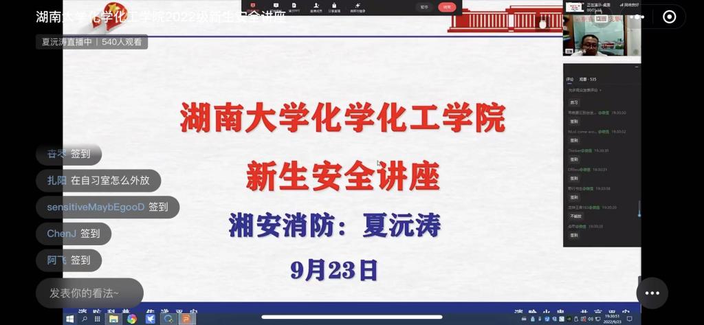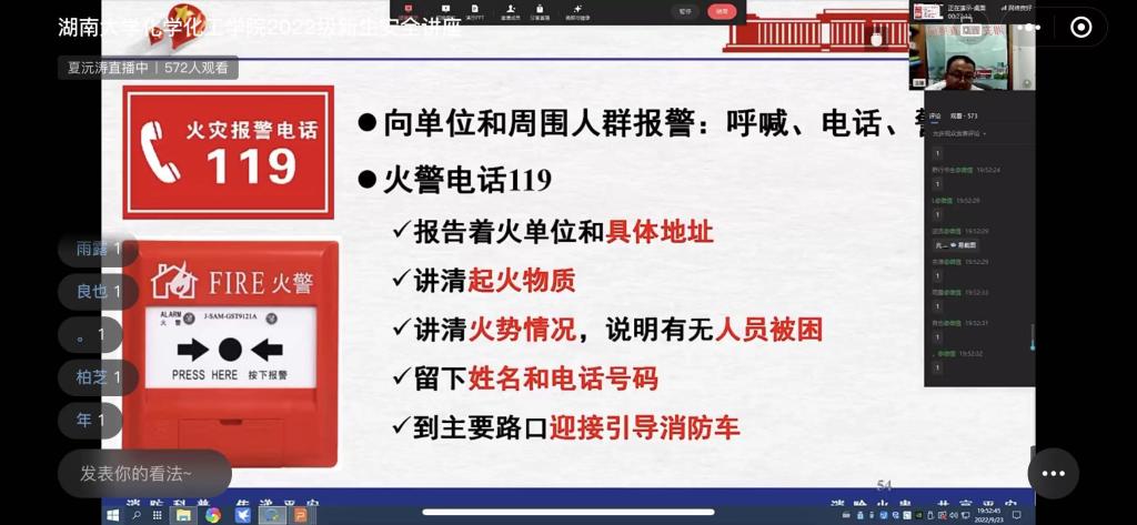 为进一步做好全彩H漫消防安全工作,帮助2022级新生树立消防安全防范意识,掌握消防安全知识,正确应对各类突发事故。9月23日,全彩H漫以线上直播的方式组织召开2022级新生应急安全讲座,全院研究生和本科生新生600余人参加。