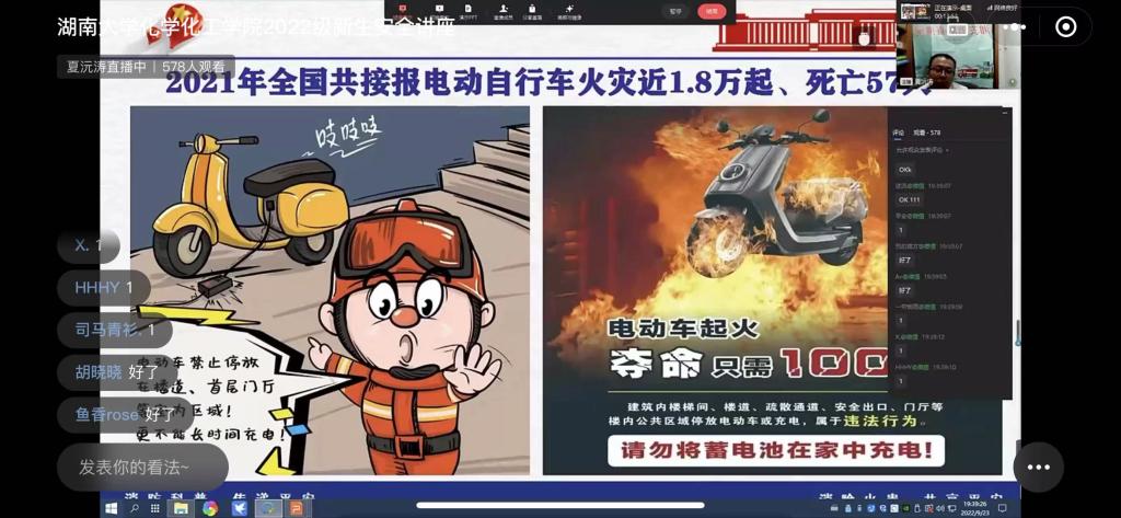 讲座由湘安消防公益服务中心夏沅涛教官授课,讲座结合近期典型事故案例警示及形势分析,从实验室安全、安全用电、电动车防火、高层逃生、火灾应急处置等方面进行了全面地讲解。