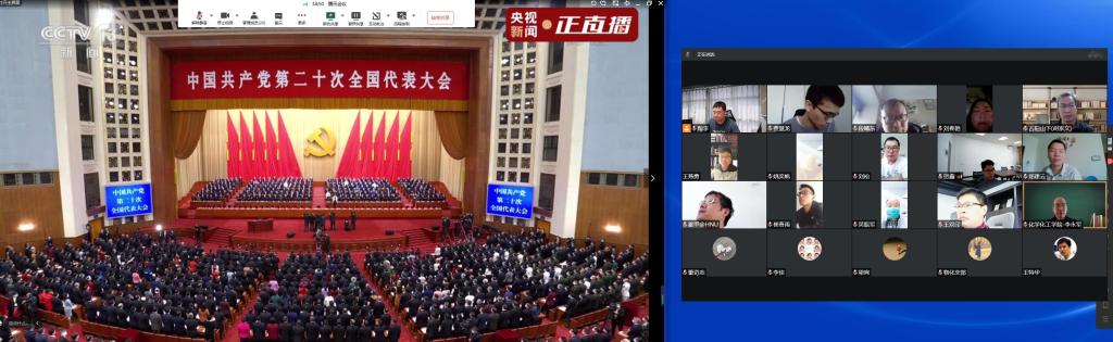 全彩H漫师生在教学楼、会议室、报告厅等,集中收看党的二十大开幕会盛况,认真聆听、学习、热议习近平总书记的报告。