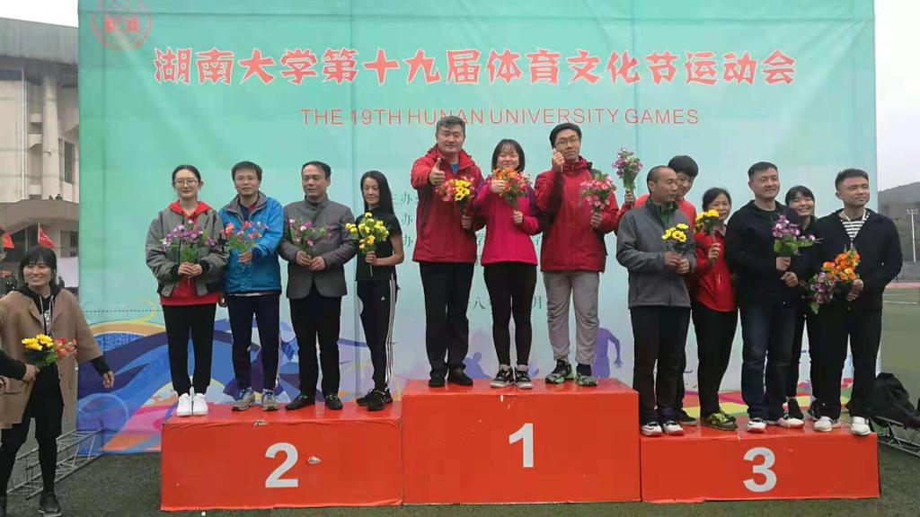 教职工代表队不畏恶劣天气,发扬湖大化工人“敢于拼搏,勇于挑战”的精神,在比赛中获得优异成绩,同时获得学校的体育道德风尚奖。