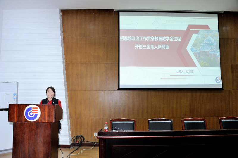 接下来全彩H漫党委副书记、纪委书记范媛吉同志以《把思想政治工作贯穿教育教学全过程开创三全育人新局面》为题,与全体参会人员一起认真学习了习近平总书记在全国高校思想政治工作会议上的讲话、习近平总书记在全国教育大会上的讲话和习近平总书记在学校思政理论课教师座谈会上的讲话等重要文件精神,并介绍了兄弟院校在思政工作方面一些好的做法和经验。