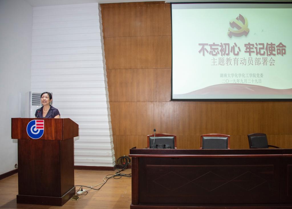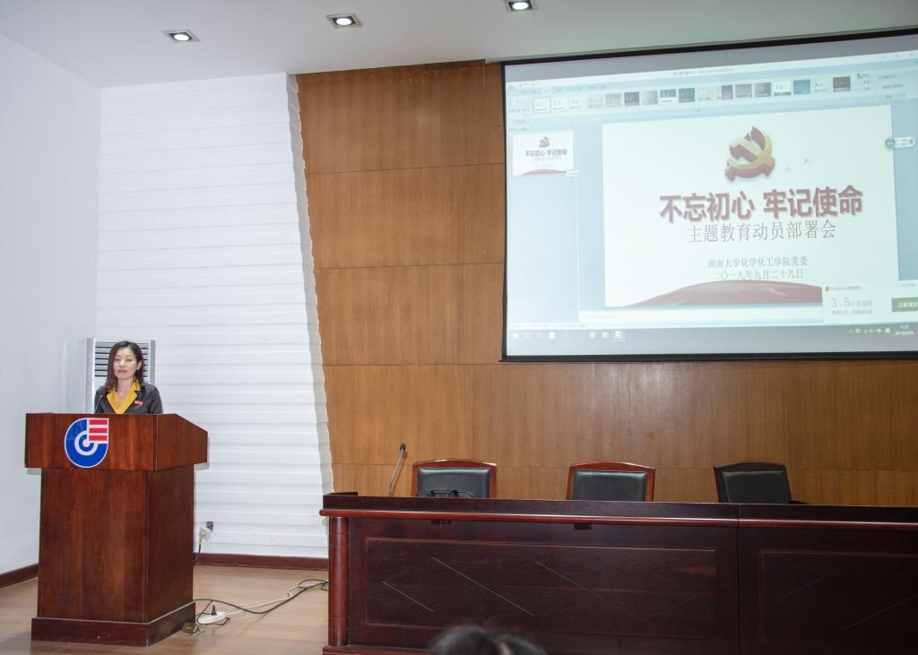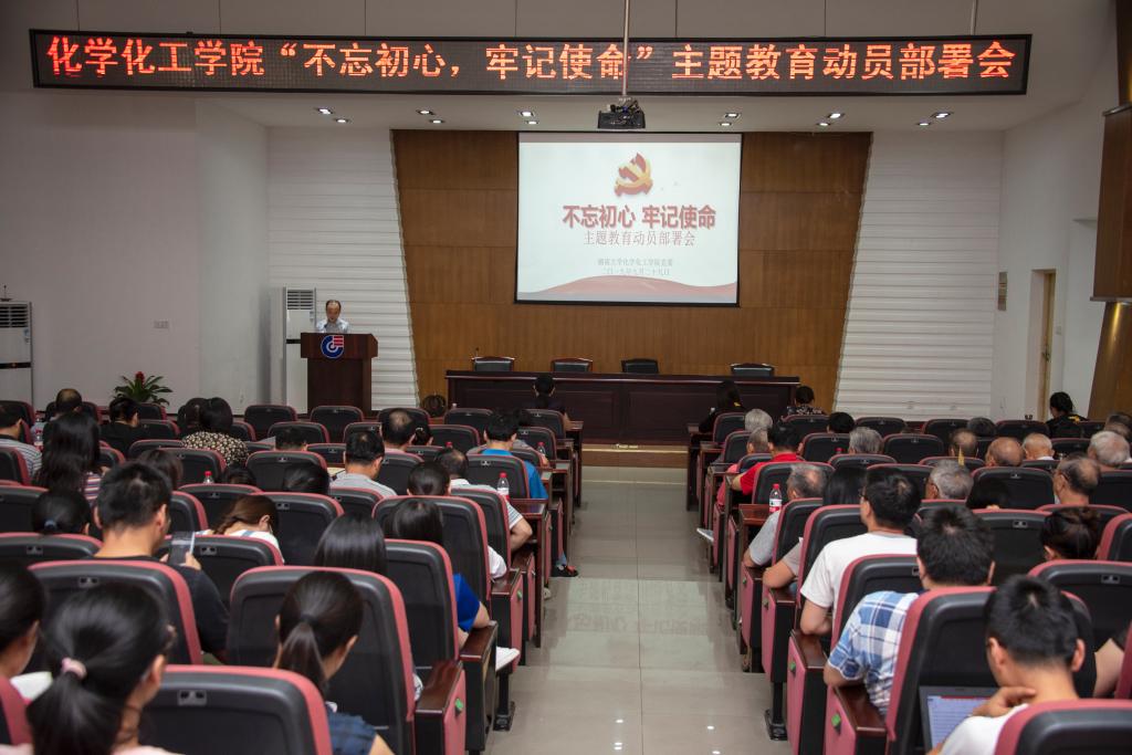 在新化工楼D区报告厅召开了“不忘初心、牢记使命”主题教育动员部署会,对全彩H漫主题教育进行了全面动员和具体部署。全彩H漫党委书记王玉枝同志作了动员部署讲话,学校主题教育第一督查指导组成员、校团委书记彭嘉芬同志出席会议并讲话,全彩H漫院长张晓兵同志主持会议。全彩H漫领导班子成员、党委委员、全体教工党员、离退休党支部部部分党员和学生党支部书记参加会议。