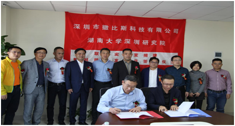 卢彦兵副教授与深圳市撒比斯科技有限公司签署合作协议,就半导体产业高分子材料系列产品的开发、产业化应用研究与平台建设方面展开合作。