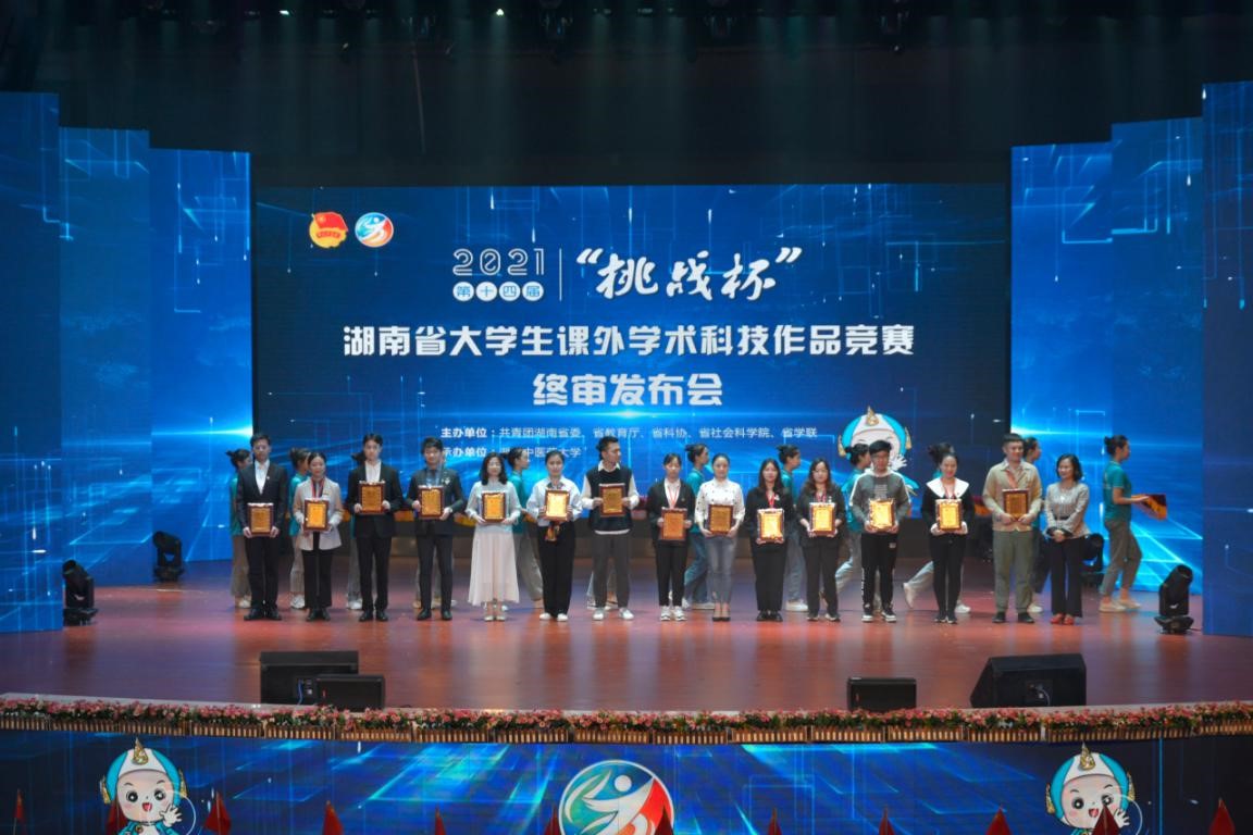活动由共青团湖南省委员会、湖南省教育厅、湖南省科协、湖南省社科院、湖南省学联共同主办、湖南中医药大学承办。自今年3月赛事启动以来,省内近百所高校、10万余名师生踊跃参赛,通过前期校赛、资格审查等层层选拔,共有81所高校的539件作品闯进省赛。经过各领域专家学者的严格评审,共有154件作品进入终审决赛环节。决赛通过现场答辩评出特等奖和一、二等奖,并从中选送优秀作品代表湖南参加全国“挑战杯”大学生课外学术科技作品竞赛。