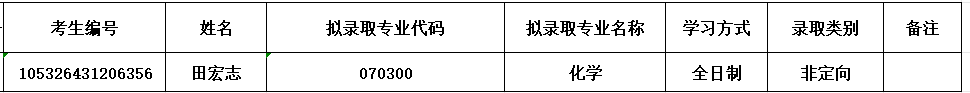 硕士招生指标调整,化学专业增加一个招生计划,按照《化学化工全彩H漫2026年硕士研究生招生复试录取工作实施细则》,经全彩H漫党政联席会议审定,按照硕士招生考试总成绩依次录取下一位,名单如下: